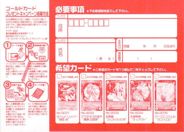 (GAトレカの当たり券での応募特典)